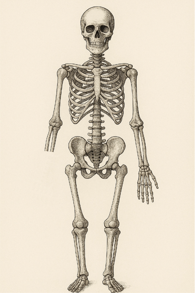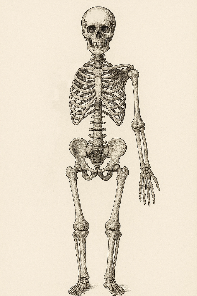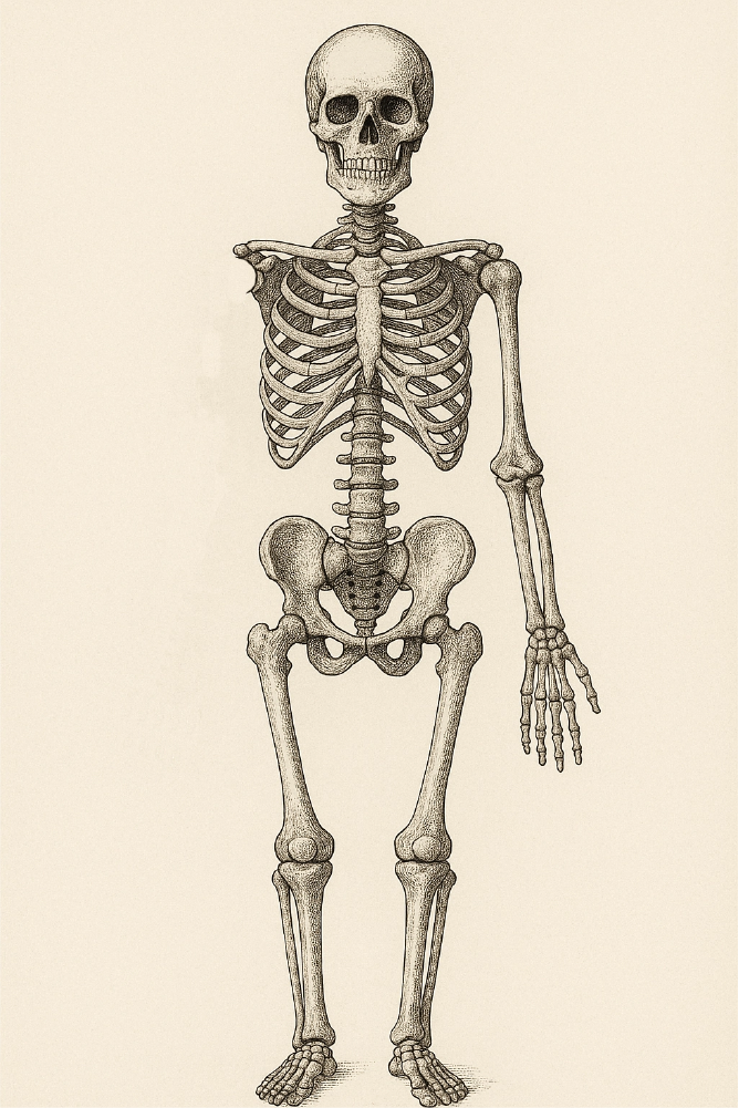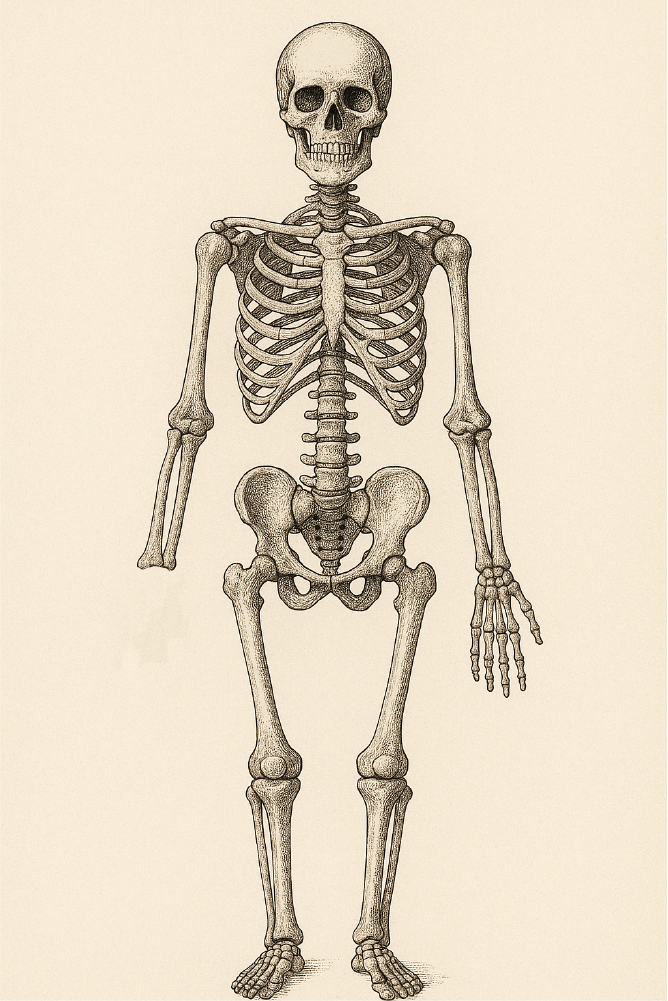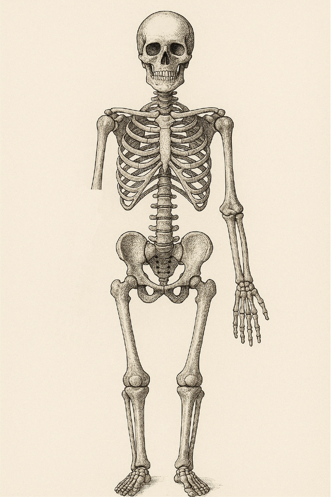 Schéma du corps humain illustré de manière vintage. Le schéma ressemble à l'homme de Vitruve de Léonard de Vinci mais avec un côté moderne car l'homme a des tatouages.