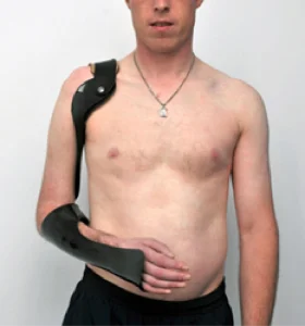 L’orthèse est directement fixée (ou en contact) à la partie du corps qui en a besoin (par exemple : une épaule).